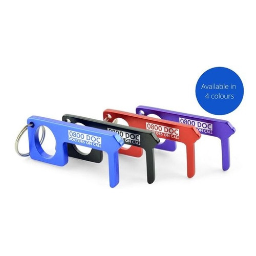 Avoid touching surfaces with this aluminium hands free aid. Split iron keyring attachment making it super portable. Branding area of 30 x 6mm