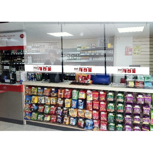 5mm Acrylic panel supplied with hanging wires and suspended ceiling hooks (alternative ceiling fixings available), also supplied with printed warning sticker on the screen