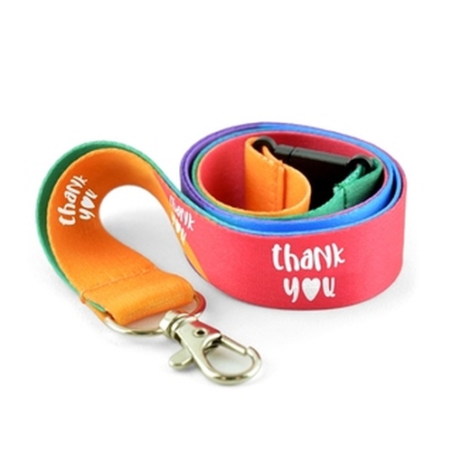 Tags: rainbow, lanyard, rainbow lanyard, colourful, branded, printed, personalised